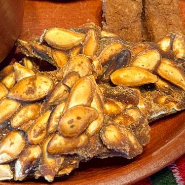 El puxinú es un dulce tradicional zoque hecho con pepitas de calabaza tostadas y miel de piloncillo, que se mezclan y moldean en bloques compactos. Su sabor dulce y textura crujiente lo convierten en un manjar típico de la región, representando la cultura e identidad zoque.